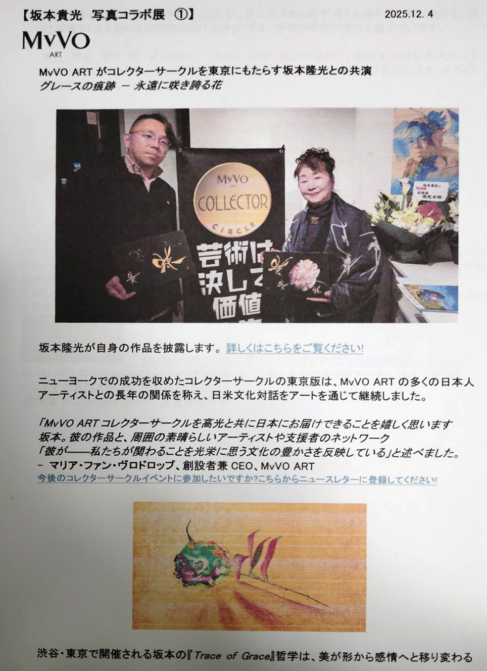 2025年12月4日 開催された坂本貴光さんのイベントがニューヨークで記事になり光栄にも、末廣博子も坂本貴光さんとご一緒の写真が掲載されました。