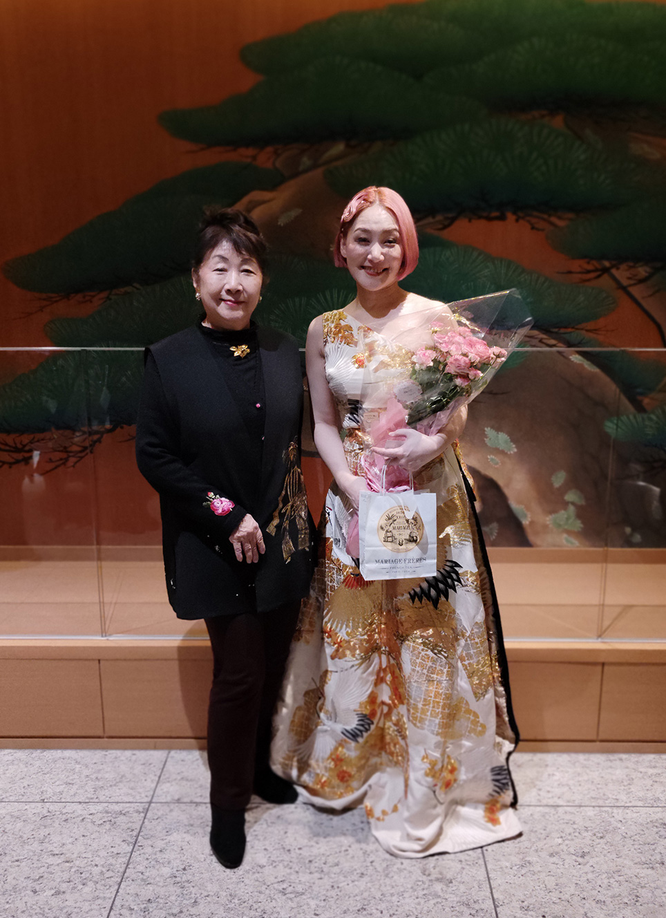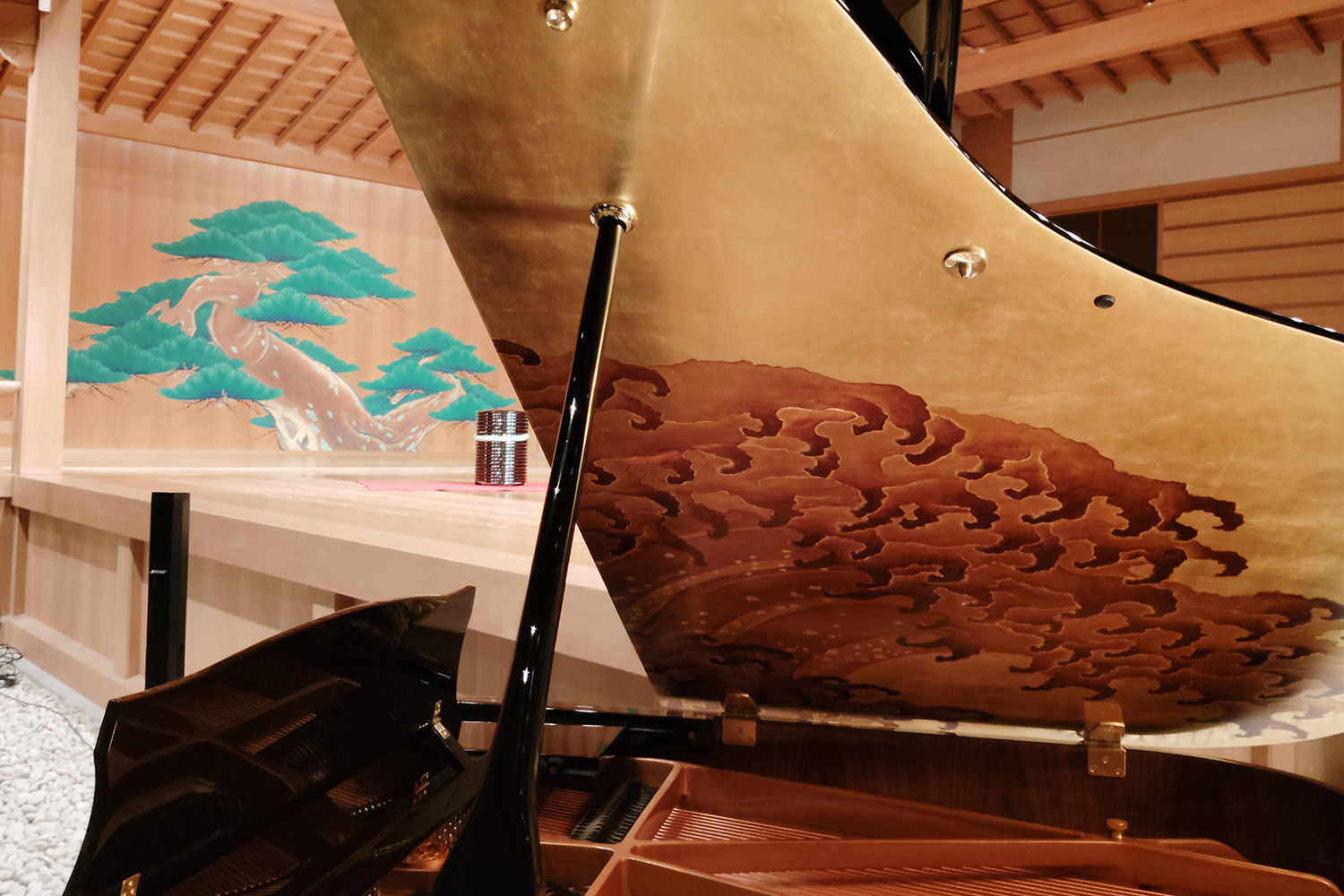 能楽堂に蒔絵の施されたピアノが入り、MAYさんの奏でる音に尺八、これにも蒔絵が施されています。能舞台に観世流シテ方能楽師の三郎太師が舞。まだお若い方々がこれから先の継承に新しい風を吹き込んだ瞬間を体験する事ができ、これから先が楽しみです。