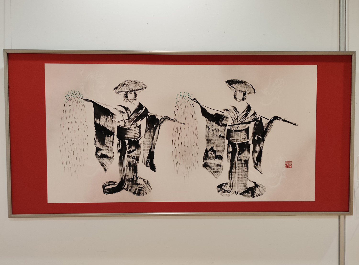 額は経師屋さんにお願いしてますが、赤のマットで、華やかな雰囲気で良かったです。
