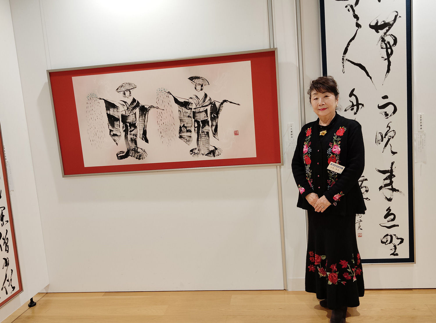 今年の作品は、『二人藤娘の舞』を出品しましたが、沢山の皆様がいらしてくださり、大好評で良かったです。堀会長先生も「横浜書作展は色々な作品があって楽しい」と、お客様がおっしゃってますと。